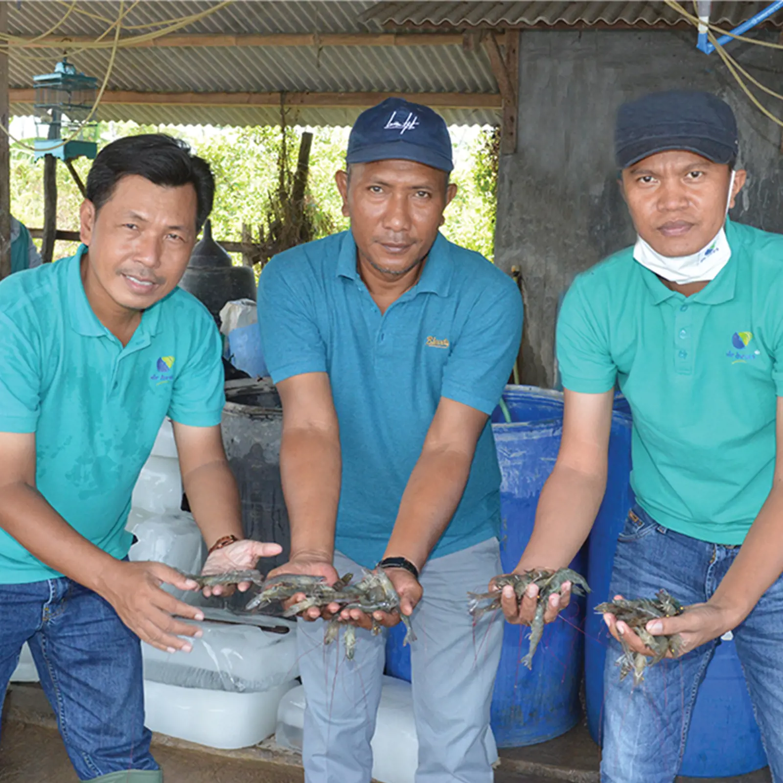 He now owns 67 ponds or around 7 hectares of ponds which are his own. As his biggest supporter, his wife has helped him build and achieve more. In the future, he hopes to expand and add modern ponds with adequate facilities and safer sources. Together with other shrimp farmers, he shares his knowledge and experiences to help make shrimp farming in Indonesia more sustainable.